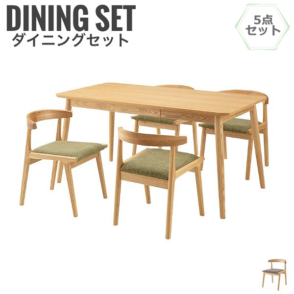 ■ダイニング 5点 セット テーブル 机 + チェア (イス 椅子) 4脚 約幅140cm ミックスカラー アッシュグレー×2 ライトグレー×2 天然木 木