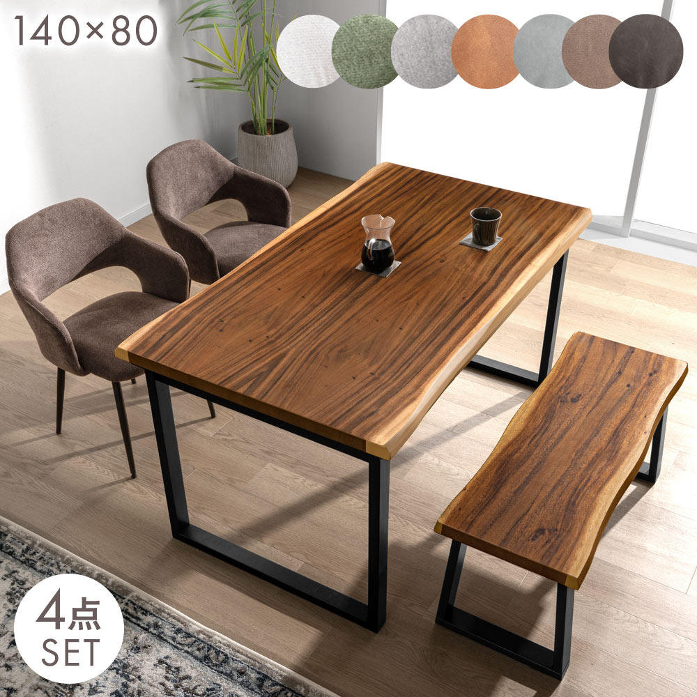 ■天然木 ダイニングセット 4点 140 4人掛け ベンチ チェア ダイニングテーブルセット 長方形 ダイニング テーブル セット ダイニングテー