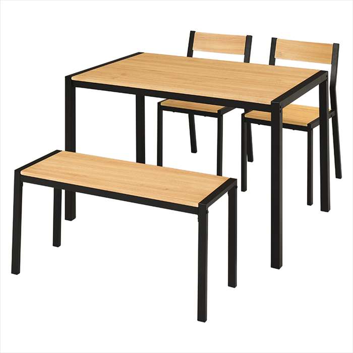 木製の温かみを感じる北欧風ダイニング4点セット。木目を活かしたやさしい色味で毎日の食卓を彩ります。個性的でありながら空間に自然と溶け込む洗練されたデザインとなっております。■テーブル【商品サイズ(約)】幅120×奥行75×高さ70cm【梱包サイズ(約)】129x82x16cm(25kg)【材質】天板:天然木化粧繊維板脚部:ラッカー塗装(ウレタン樹脂塗装)【生産国】マレーシア【備考】組立品■チェア【商品サイズ(約)】幅44×奥行50.5×高さ86cm【梱包サイズ(約)】92×45×22cm(12.2kg)【材質】主材:天然木(ラッカー塗装)座面:ポリエステル・ウレタンフォーム【生産国】マレーシア【備考】組立品(ハンマーが必要)■ベンチ【商品サイズ(約)】幅100×奥行33×高さ43cm【梱包サイズ(約)】107×36×12cm(8kg)【材質】主材:天然木(ラッカー塗装)座面:ポリエステル・ウレタンフォーム【生産国】マレーシア【備考】組立品