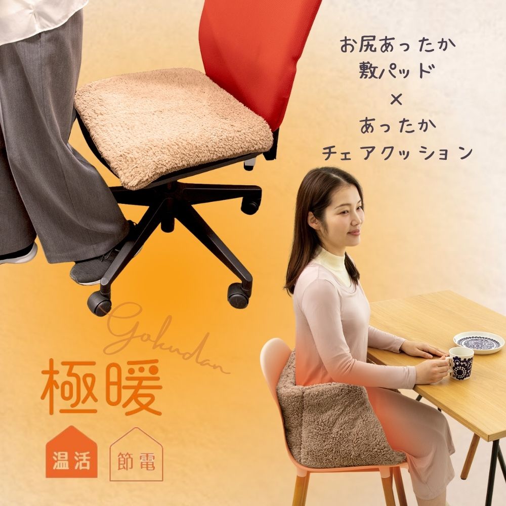 ■極暖お尻敷パッド・あったかチェアクッション セット あったか グッズ デスクワーク イス 椅子 いす オフィス ダイニング 会社 ミニ 温め