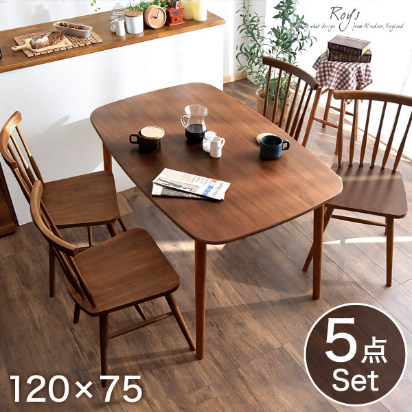 ダイニング 5点セット ダイニングテーブル チェア 5点 セット 120 × 75 天然木 ダイニング テーブル 木製 木目 食卓テーブル オシャレ シンプル モダン コンパクト 北欧 英国 おしゃれ【商品番号:49600024】