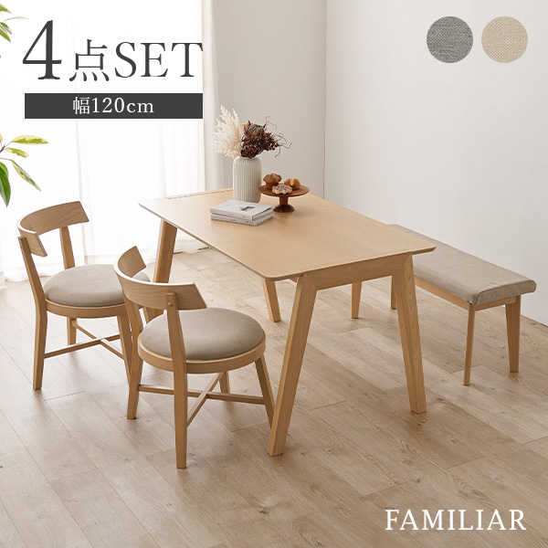 ■ダイニングチェア 4点セット チェア 椅子 セット 斜め脚 テーブル ダイニング ベンチ 北欧 木製 丸形 ラウンド ナチュラル ファミリア カ
