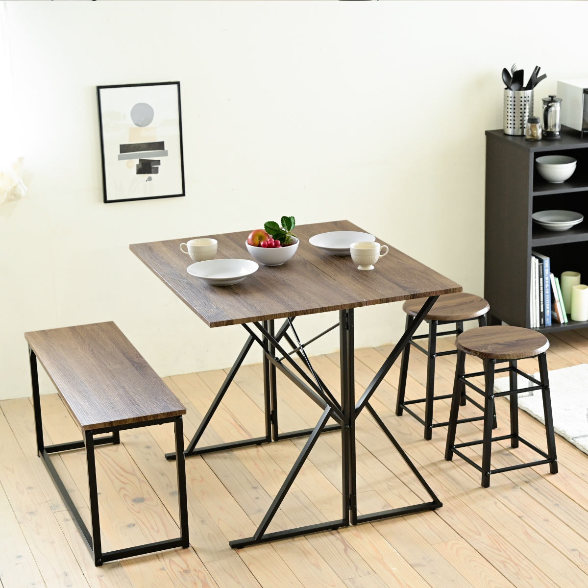 ■ダイニングセット 4人 ベンチ テーブル スツール2脚 2WAY ( 4点セット 折りたたみ ダイニングテーブル 椅子 セット ダイニング 幅90cm