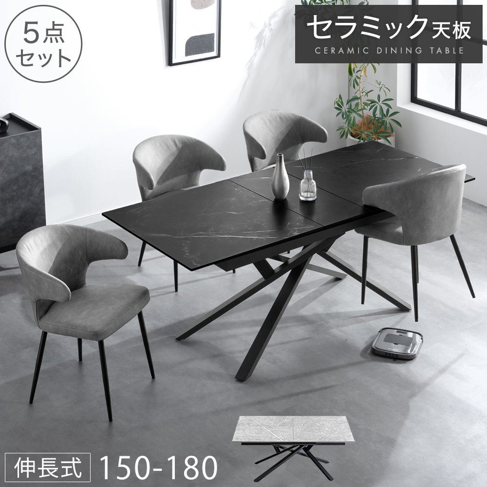 ■お掃除ロボット対応 伸長 セラミック ダイニングテーブルセット 5点 150cm 180cm ダイニングテーブル セット テーブル 長方形 ダイニング