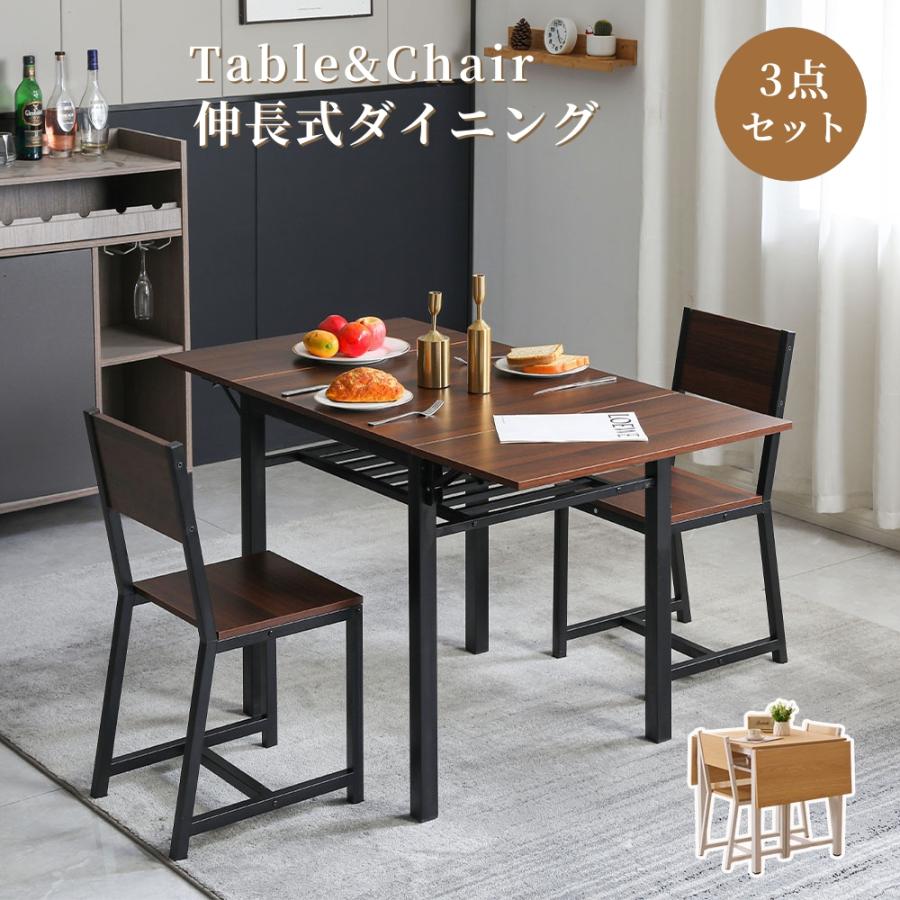 ダイニングセット 3点セット 伸長式 2人掛け ダイニング3点セット 無垢材 ダイニングテーブルセット ダイニングチェア 折りたたみテーブル ウッドダイニング