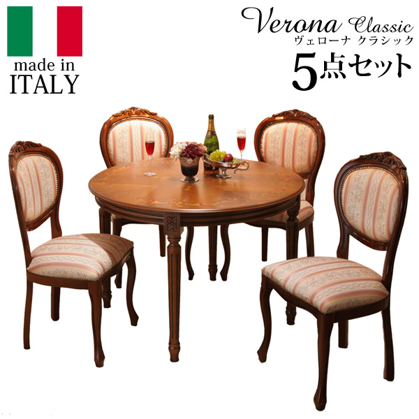 ■イタリア製 ヴェローナ クラシック ダイニング 5点セット 五点セット ダイニングテーブル 幅110 ダイニングチェア 四脚 アンティーク 北