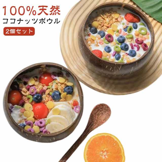 ■デコレーションボウル 2個セットココナッツボウル ココナッツシェル スムージーボウル ライス 環境に優しい 人気 サラダ ダイニング キッ