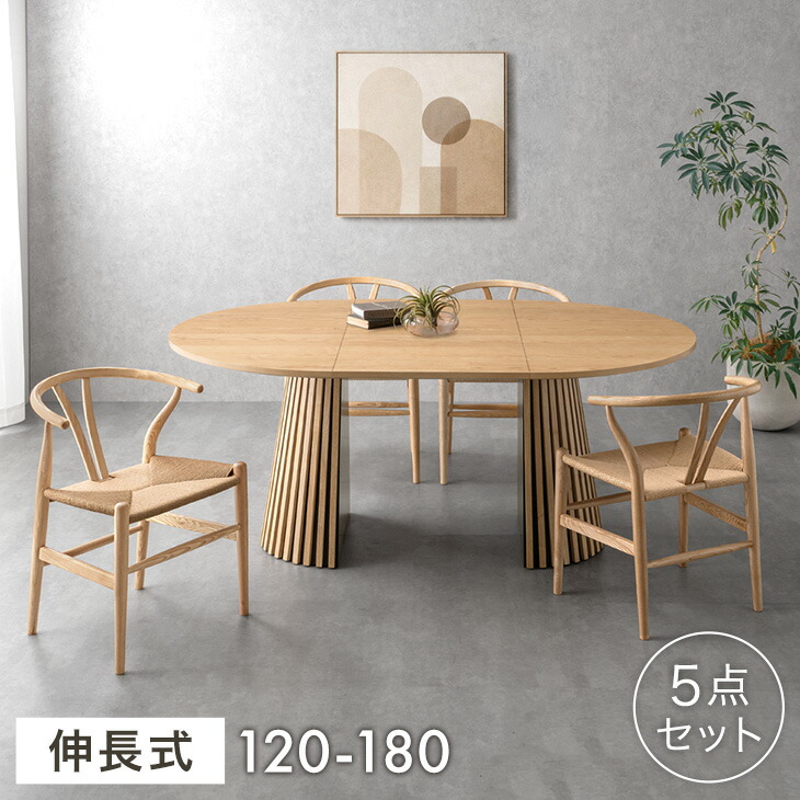 ■伸長式 ダイニングテーブルセット 5点 4人掛け 円形 120 楕円形 180 天然木 伸長式テーブル 伸長式ダイニングテーブル ダイニング テーブ