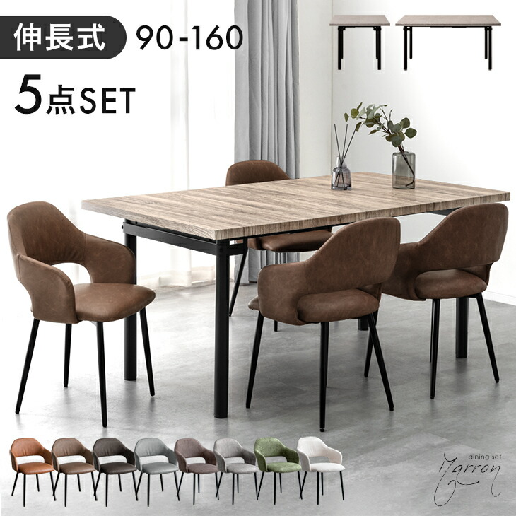 ■伸長式 ダイニングセット 90-160 4人掛け 5点 ダイニングテーブルセット 伸長式ダイニングテーブル 伸長 伸縮 ダイニング テーブル セッ