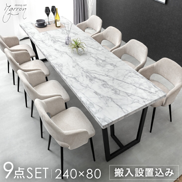 ■【テーブル搬入設置込】 幅240cm 石目調 ダイニングテーブルセット 8人掛け 9点 長方形 ダイニングセット ダイニング セット ダイニング