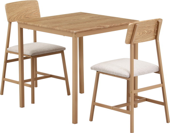 [サイズ]商品サイズ:幅700×奥行700×高さ720mmテーブルサイズW700x D700x H720mmチェアサイズW435x D460x H810mmチェア座面高455mm座面厚40mm天板厚15mm鉄厚0.8mm耐荷重(テーブル)20?[素材]■甲板の表面材(テーブル天板):合成樹脂化粧繊維板(PVC) ■構造部材(テーブルフレーム):金属(鋼) ■表面加工(テーブルフレーム):エポキシポリエステル樹脂塗装 ■構造部材(チェアフレーム):金属(鋼) ■構造部材(座面):繊維板 ■構造部材(背部):合成樹脂化粧繊維板(PVC) ■表面加工(チェアフレーム):エポキシポリエステル樹脂塗装 ■張り材:ポリエステル ■クッション材:ウレタンフォーム[原産国]中国[カラー]ベージュ[送料]全国一律送料無料(北海道・沖縄・離島は配達不可)[商品説明]軽くて使いやすい!本格木目調ダイニングセット3点[備考]※お急ぎの場合は必ず事前に在庫確認を行って下さい。※メーカー倉庫より直送になります。