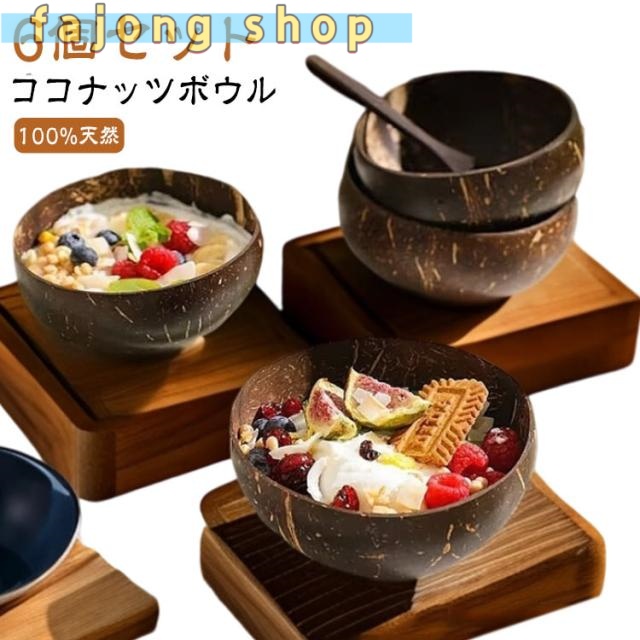 ココナッツボウル【6個セット】おしゃれ 食器 ご飯茶碗 スムージーボウル ココナッツシェル 装飾用 ライス キッチン サラダ ダイニング デザート サラダ 可愛い デコレーションボウル ナチュラル インテリア 雑貨 ディスプレイ 環境に優しい 可愛い