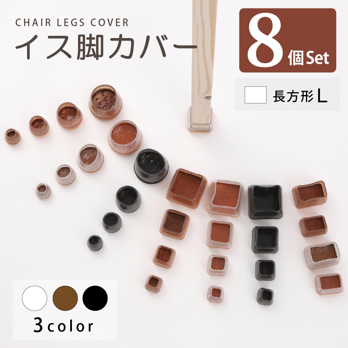 ■椅子脚カバー 長方形 L 8個セット 椅子脚キャップ シリコン おしゃれ ダイニング 椅子 椅子あしカバー キャップ 足カバー 床保護 脚 角