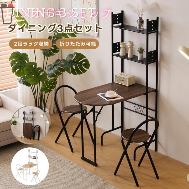 パソコンデスク ダイニングテーブルセット2人用 1人用 3点セット ダイニング セット スチール 食卓 チェア2脚 幅90cm コンパクトサイズ 2人掛け おしゃれ 二段収納付き 折り畳み式テーブルと椅子 新生活