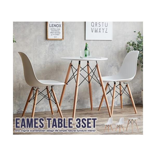 ■ダイニングテーブルセット 2人 2人用 幅60 おしゃれ 丸 円形 木脚 3点セット チェア2脚+テーブル 白 カフェ風 イームズ デザイナーズ 新