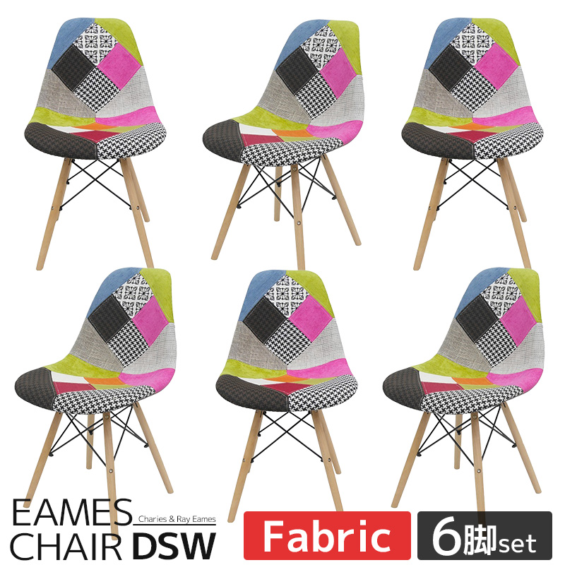 ■イームズ チェア ファブリック パッチワーク Eames DSW スクープ デザイナーズ家具 イームズチェア ダイニングチェア ミックス 6脚セット