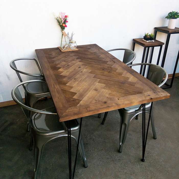 ■KOZAI ダイニング テーブル ヘリンボーン柄 古材 ブルックリンスタイル sun-5776880s1 店舗 カフェ ラウンジ ロビー ホテル 法人 ダイニ