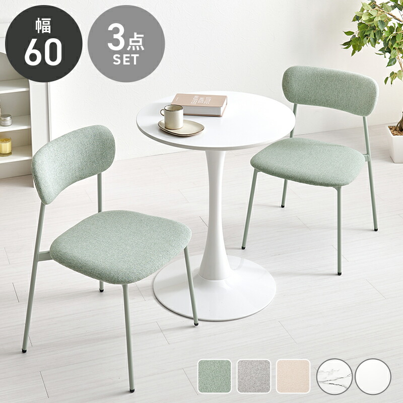 ■テーブル&チェア3点セット BT-8657-56-3S ラウンドテーブル 60cm カフェテーブル 丸テーブル ダイニング チェアー 2脚 肘なし 丸み デ