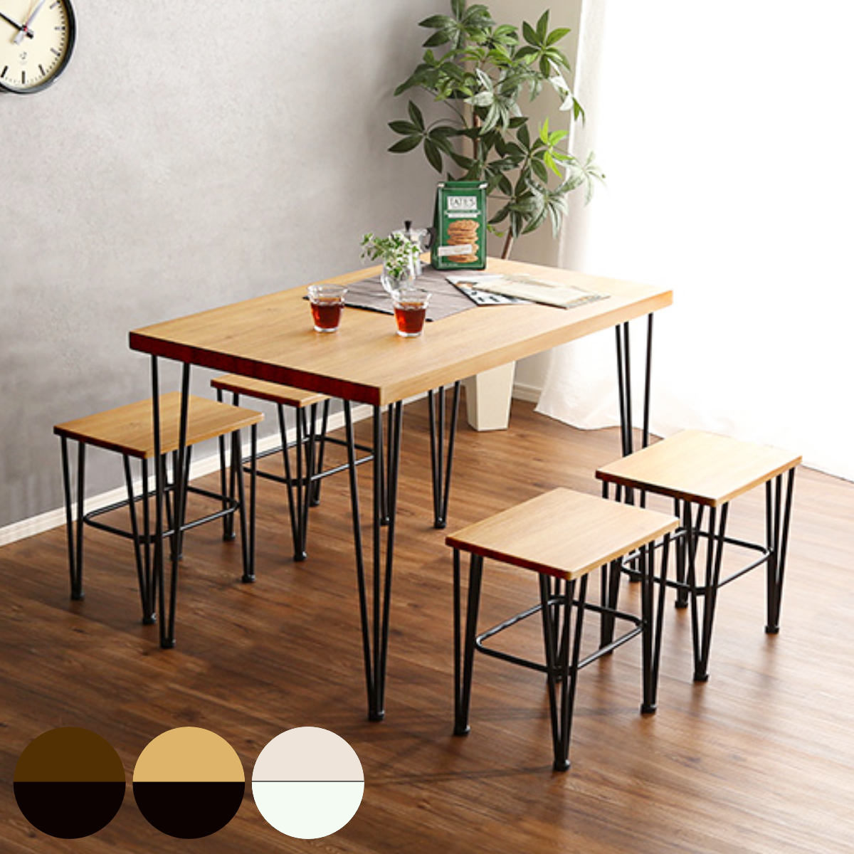 ■ダイニングセット 4人 テーブル チェア4脚 天然木 ( 4人 5点セット ダイニングチェア 木目調 スチール脚 ヴィンテージ調 ダイニング テ