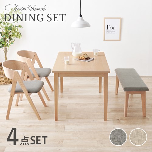 ■ダイニング4点セット グレー MI-861037NALGY-4S テーブル:(約)幅120cm、チェア:(約)幅49cm、ベンチ:(約)幅100cm 【北海道・沖縄・離島