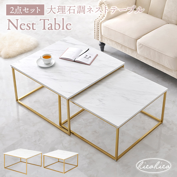 ■テーブル ネストテーブル 大理石 ネストテーブルホワイト おしゃれ ソファテーブル 家具 インテリア リビング ダイニング ゴールド脚 リ