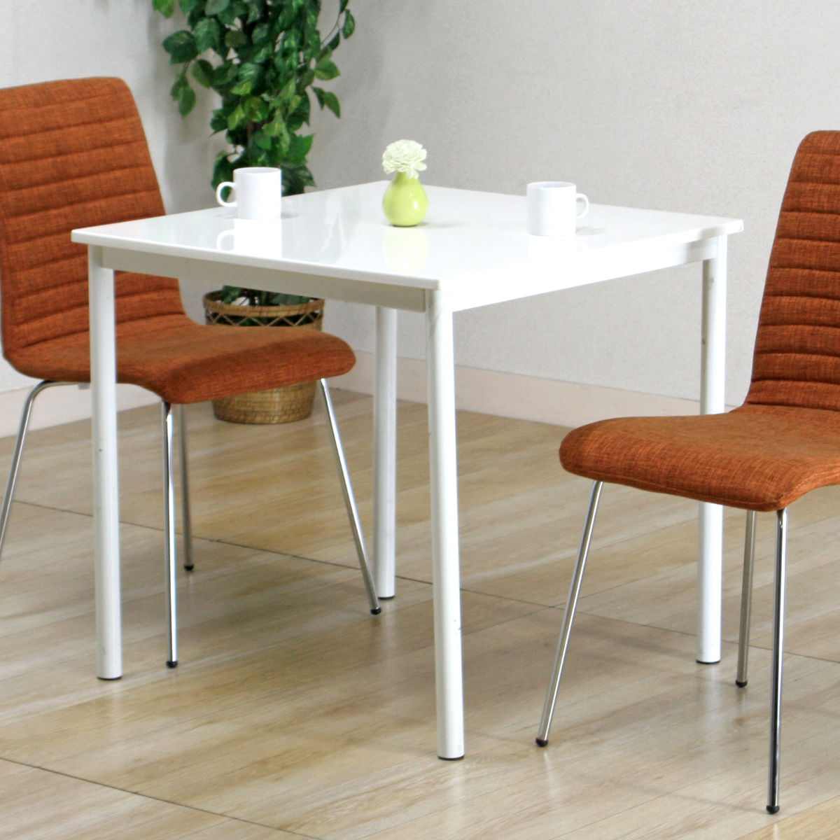 ■ダイニングテーブル 幅75cm 正方形 コンパクト 2人用 テーブル 机 鏡面 スチール脚 ( ダイニング 食卓テーブル 2人掛け 幅 75 リビング