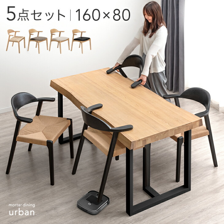 ■お掃除ロボット対応 ダイニングテーブル セット 4人掛け 5点 160cm 天然木 アッシュ 肘付き ハーフアーム ダイニング テーブル セット 長