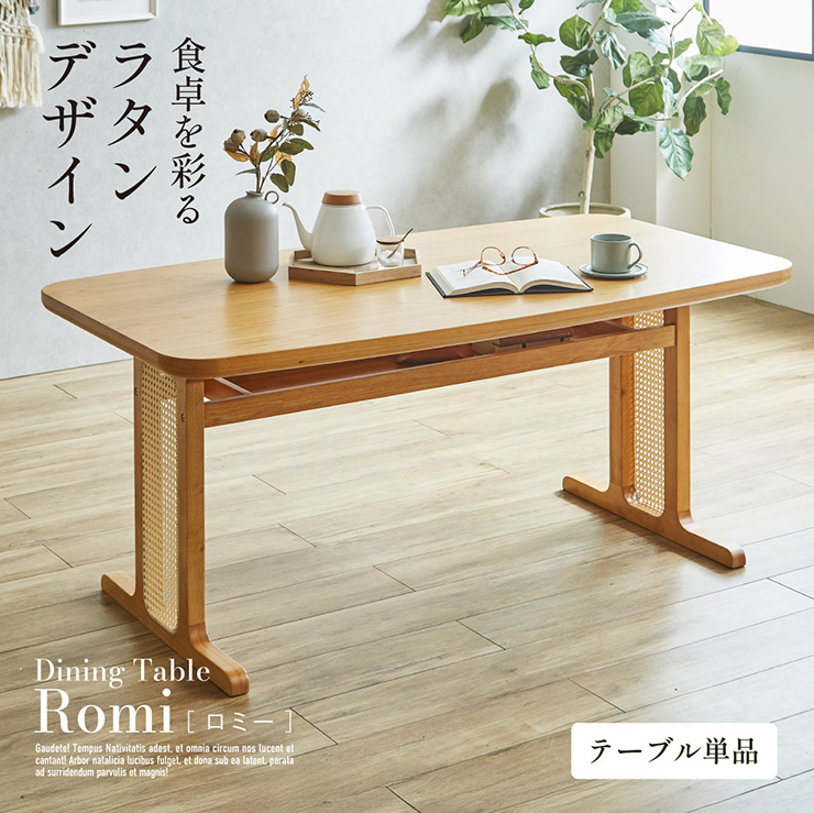 ■ダイニングテーブル 4人掛け 幅155cm 単品 ラタン ダイニングテーブル Romi(ロミー) ダイニング テーブル 長方形 食卓テーブル ワークデ