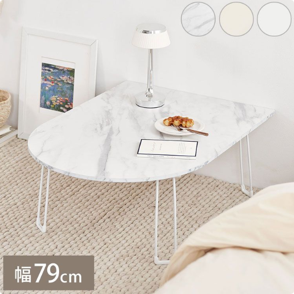 ■Roomnhome ローテーブル 半円 丸 楕円 おしゃれ 北欧 白 幅79cm 木製 天然木 丸テーブル ダイニング テーブル 2人 食卓 テーブル