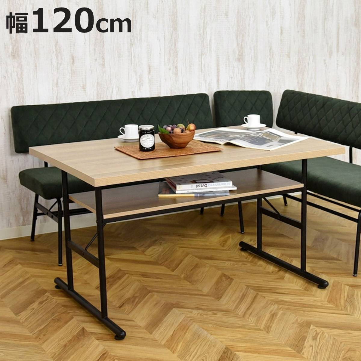 ■ダイニングテーブル 幅120cm 4人掛け スミレ スチール脚 ( テーブル 食卓テーブル 机 食卓机 収納棚 長方形 ダイニング 食卓 木目調 コ
