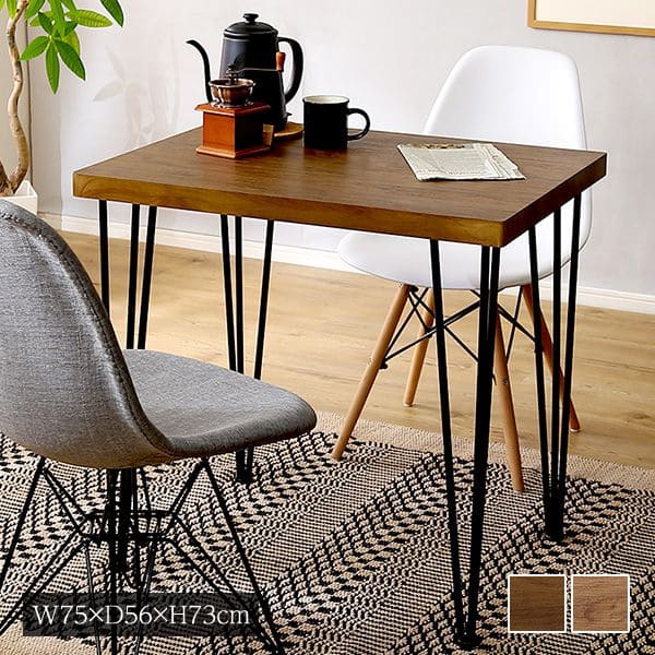 ■ダイニングテーブル 2人用 木製 75 木目 長方形 ヴィンテージ スチール テーブル 2人 コンパクト 一人用 食卓テーブル ダイニング 単品
