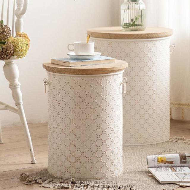 サイドテーブル コーナーテーブル 収納付き テーブル フランス アンティーク ヴィンテージ クリーム 白 無垢材 リビングルーム ベッドサイド 2サイズ 蓋付き 一人暮らし おしゃれ 贈り物