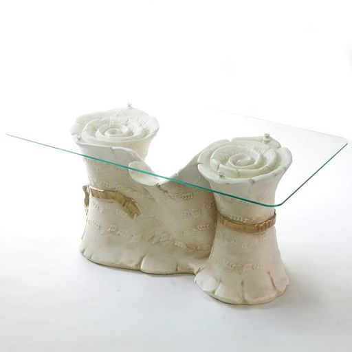 ■イタリア製 陶器 ガラス天板 テーブル ネオクラシック ムジカ 楽譜デザイン 高さ45CM TYL-03