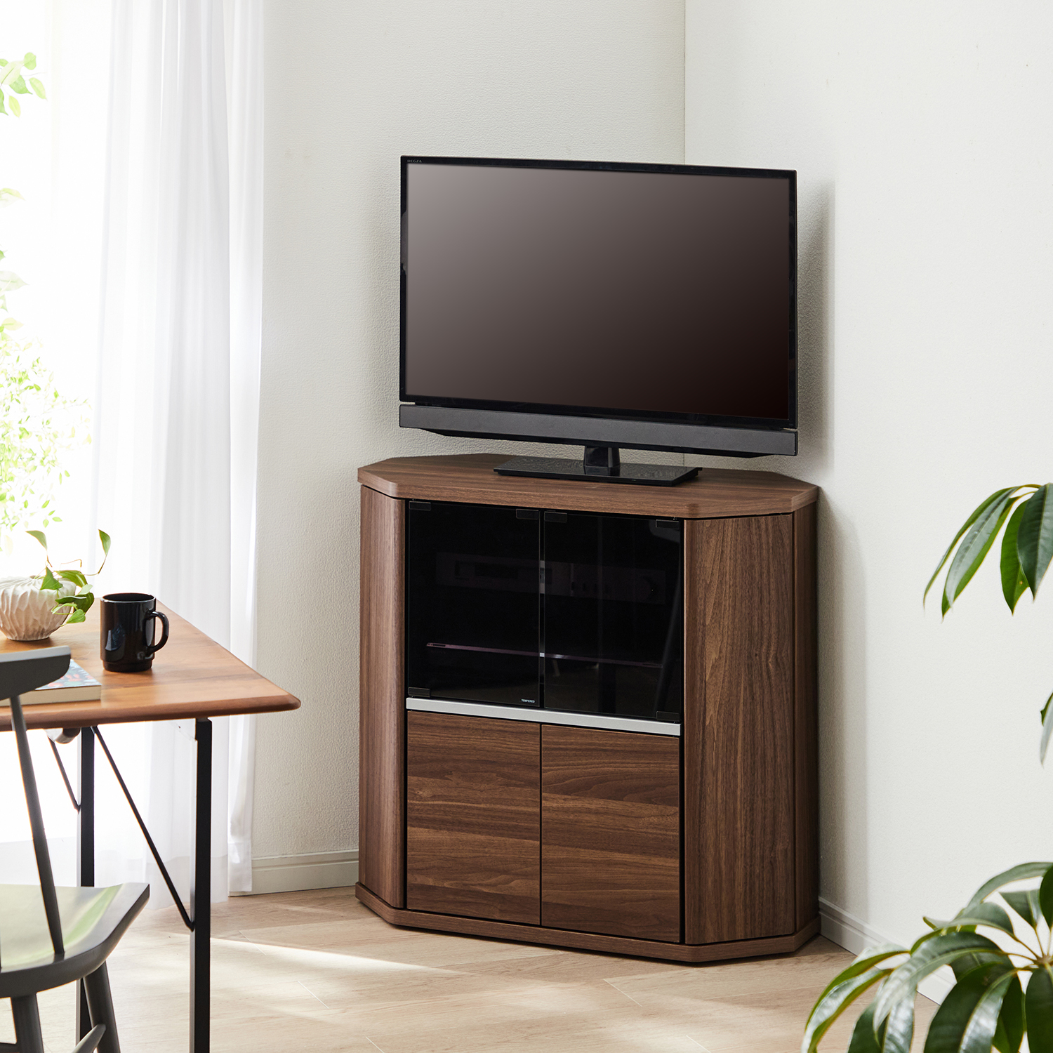 高級感のある木目調のシートにガラスを組み合わせた重厚感のあるデザインコーナーに沿う8角形のフォルムで、お部屋をスッキリ見せてくれます両サイドの扉内には、ゲーム機やルーターなどを2色からお好きなサイズをお選びください