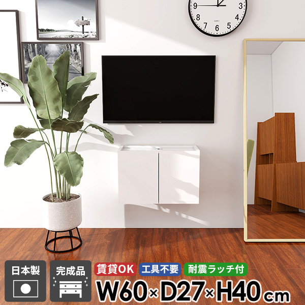 ■テレビ台 フロートテレビボード ウォールシェルフ TVボード テレビボード フロート シンプル 壁付け 幅60 白 配線 省スペース ホテルライ