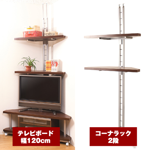 ■テレビ台 コーナーテレビボード 幅120cm+つっぱり式コーナーラック 2段 NJ-0028