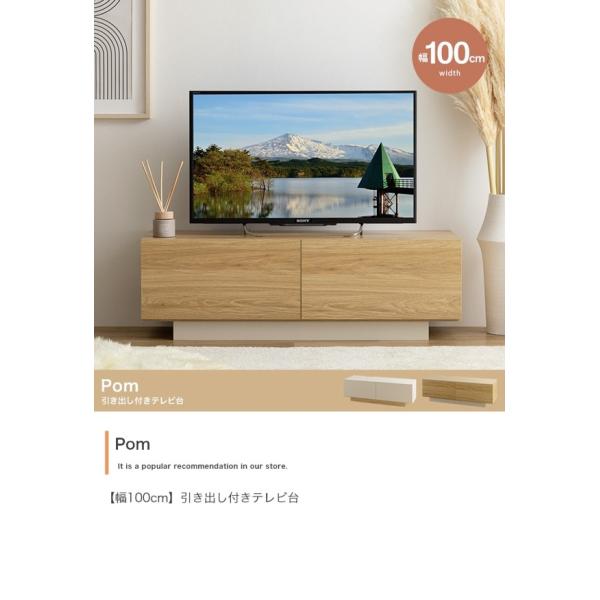■テレビ台 32インチから40型まで推奨 ロータイプ 幅100 フラップ扉付き 引き出し 大容量 収納 木製 ローボード バイカラー おしゃれ Pom I
