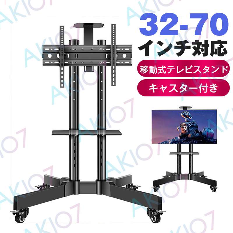 ■【32-70インチ対応】 テレビスタンド キャスター付き 移動式 テレビ台 大型テレビ 高さ/角度調節 棚板付き ディスプレイスタンド 液晶TV