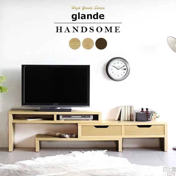 ■テレビボード おしゃれ コーナー 北欧風 完成品 木製 ローボード 伸縮 テレビ台 無垢 日本製 glande HANDSOME ◎