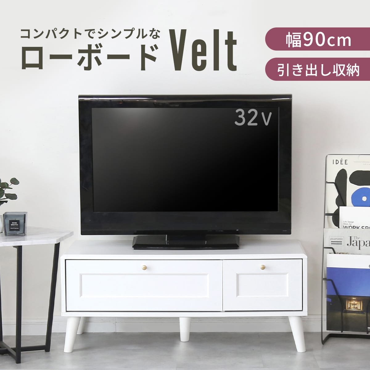 ■配送料について※別途送料対象地域のお客様はご購入手続きの際、その他要望欄へ【別途送料了承済み○○円×購入点数】と記入下さいますとスムーズな対応が可能です。・北海道:+2,000円・沖縄・離島:別途お見積り※他商品との同梱は出来かねます。■商品名:ヴェルト(テレビ台)【Velt】■本体サイズ幅90×奥行40×高さ37(cm)■梱包サイズ幅45×奥行11×高さ96.5(cm)■材質合成樹脂化粧繊維板■本体重量約19kg■総重量(梱包材含む)