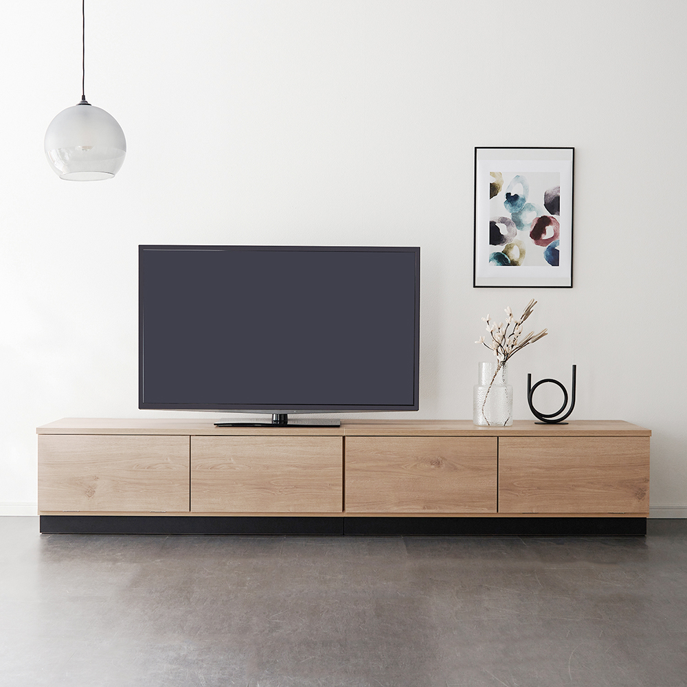 ーデザインー家族のこと・家のことを考えて作ったベルメゾンデイズの家具無駄のないシンプルなデザインを、ブラックの土台で引き締めたスッキリとした佇まいーカラーーカラーは選べる2色日本の住まいに合わせやすい、オーク材をイメージしたナチュラル最近の床材や建具に合わせた、さりげない上品さと温かな印象を与えるグレージュナチュラル―機能―幅120cm~300cmまで豊富なサイズ展開から選べます別ページで販売している1cmピッチ幅オーダータイプを組み合わせることでリビングのスペースにぴったりサイズで設置できます住宅購入を予定されている方は、オプションで造り付け家具を購入されるよりも初期費用が抑えられます引出しは奥まで取り出しやすいフルスライドレール仕様。A4ファイルが入る内寸ですフラップ扉はゆっくり開くソフトダウンステー仕様棚板は取り外し可能でどのフラップ扉内にも移動出来ます背面はコンセントのタップが置ける空間を取っているため配線をスッキリまとめられます天板にはコード落としがあり、壁にぴったり設置できます#テレビボード #ローボード #TV台 #TVボード ベルメゾンデイズ/BELLE MAISON DAYSベルメゾンデイズ は、「今日より明日、明後日が楽しくなる暮らしの提案」をコンセプトとしたベルメゾンを一歩リードするオリジナルブランドですどの商品を組み合わせても居心地の良い 美しい空間がつくれるように考えられています