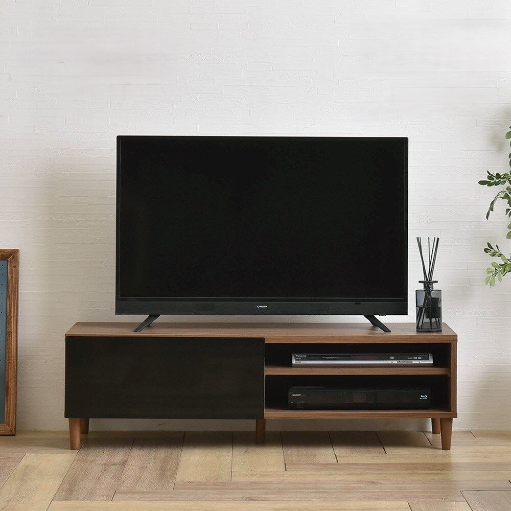 北欧デザインを取り入れたコンパクトサイズの家具シリーズ丸みのある脚部とブラックの取っ手で、甘くなりすぎない絶妙なデザインに3Dのシートを使用し木の質感を再現しましたフラップ扉を2枚配し、デッキの操作時も邪魔になりません。左右・扉上にオープンスペースを設けているので、圧迫感のなく設置できます#テレビボード #ローボード #TV台 #TVボード