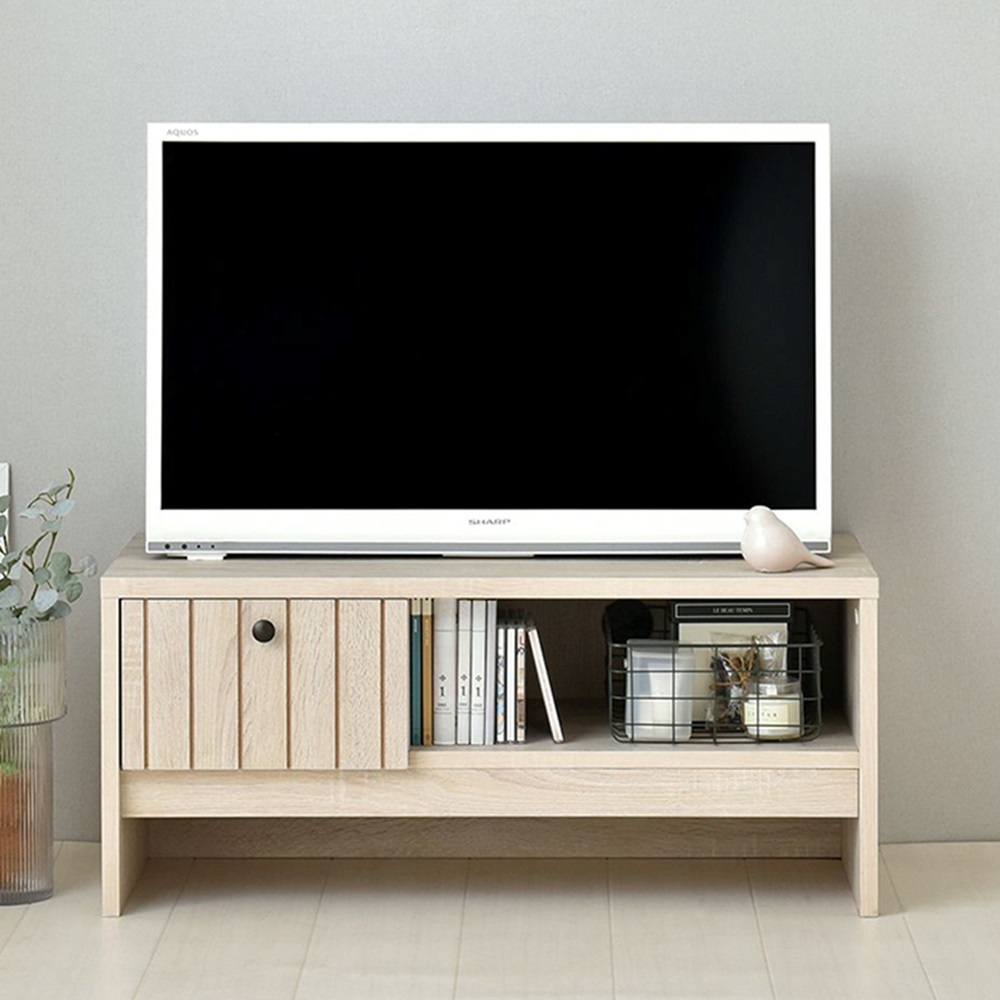 すっきりとシンプルなデザインに前板のストライプと丸把手がアクセントのコンパクトテレビ台背面化粧仕上げで、どこから見ても美しく、置く場所を選びません長くお使いいただける飽きの来ないデザインです#テレビボード#TV台#TVボード#ローボード