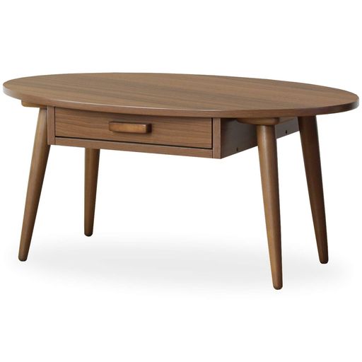 ■岩附 ローテーブル 引き出し付き 収納 木製 楕円 幅80×奥行48×高さ37CM おしゃれ ブラウン IWT-26BBR
