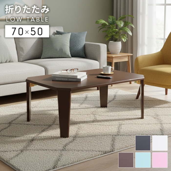 ■折りたたみテーブル 鏡面 70×50 折れ脚 コンパクト くすみカラー ローテーブル センターテーブル 完成品 おしゃれ かわいい 折れ脚テー