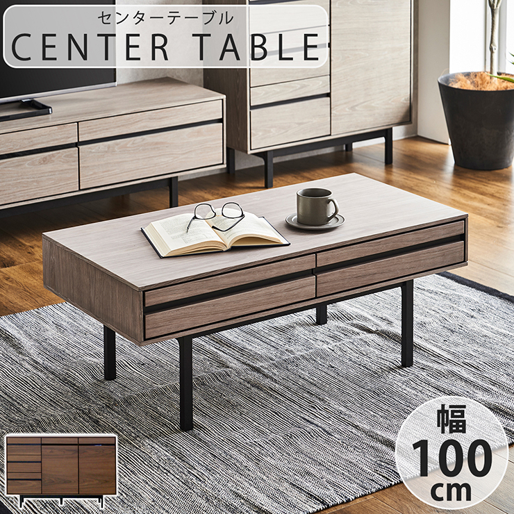 ■引き出し2杯付き センターテーブル 幅100cm 2色対応 ローテーブル リビングテーブル テーブル 机 収納 引き出し 収納棚 小物収納 ソファ