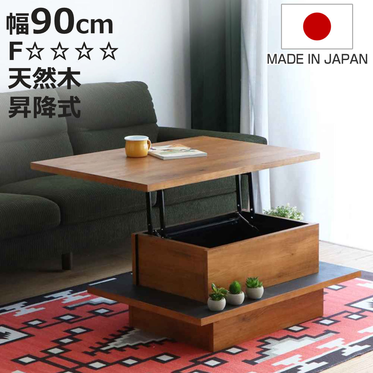 ■リフトアップテーブル 幅90cm アダムロ 天然木 日本製 ローテーブル ( 天板 昇降 テーブル リフトテーブル 完成品 リビングテーブル 天