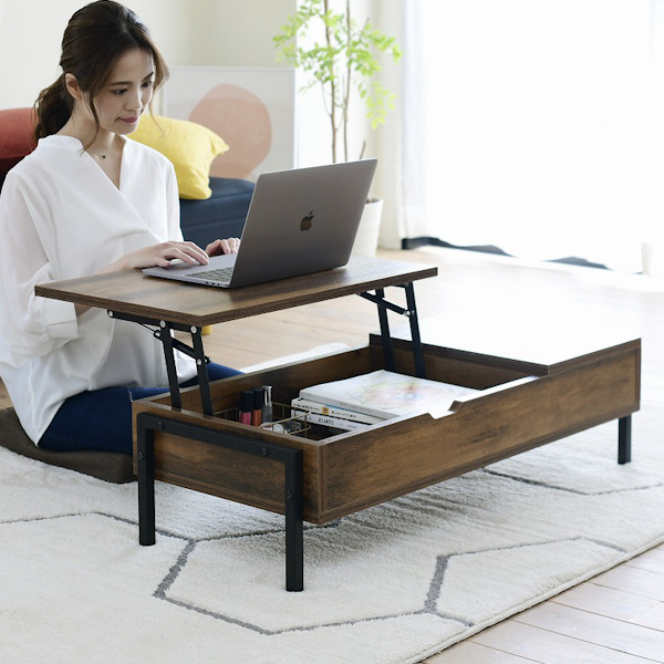 ■リフティングテーブル 幅94.5cm 高さ40cm センターテーブル 木目調 スチール 収納 ( ローテーブル 天板 昇降 リフティング リフトアップ