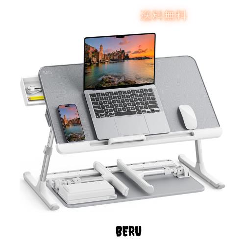 ■SAIJI ノートパソコンスタンド 折りたたみテーブル ローテーブル 膝上テーブル 高さ・角度調整 引き出し付き 耐荷 重40kg PVC表層 軽量