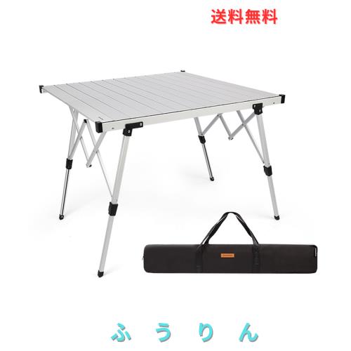 ■SUNNYFEELアウトドアテーブル キャンプテーブル ローテーブル ウッドロールトップテーブル 広い幅 天然木色 高さ 2段階調整可能 折りたた